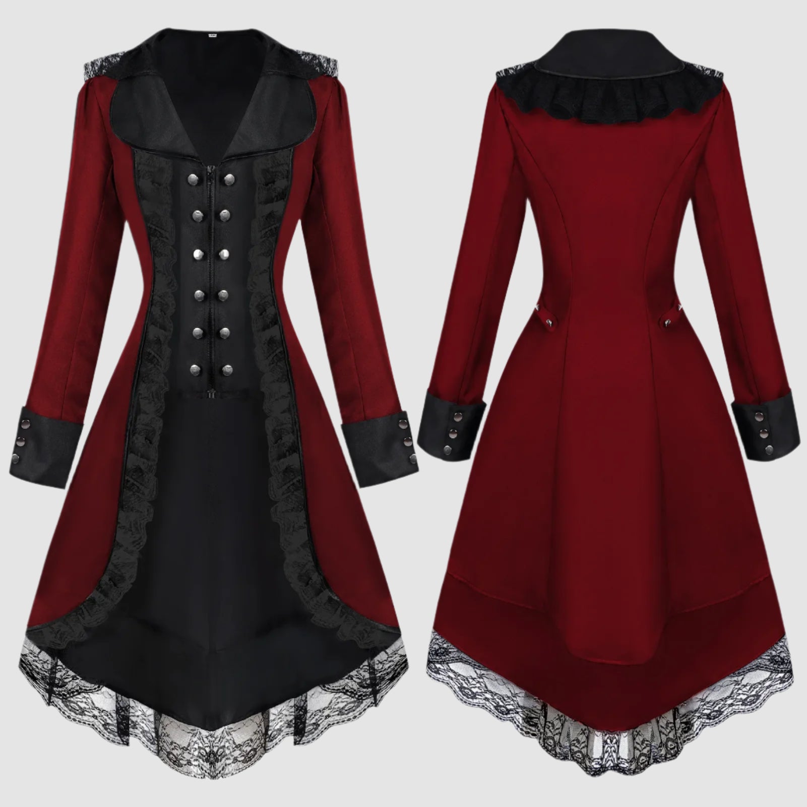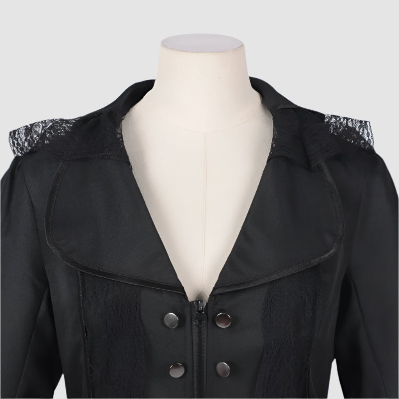 - Koristeet: koristeelliset napit ja pitsi alareunassa