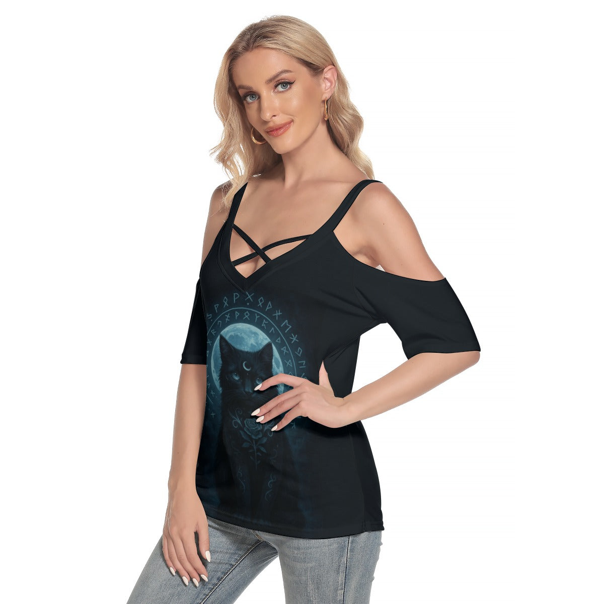 - Yksityiskohdat: kylmä olkapää, lyhyt hiha, ohuet olkahihnat, ristikkäiset hihnat rinnan päällä