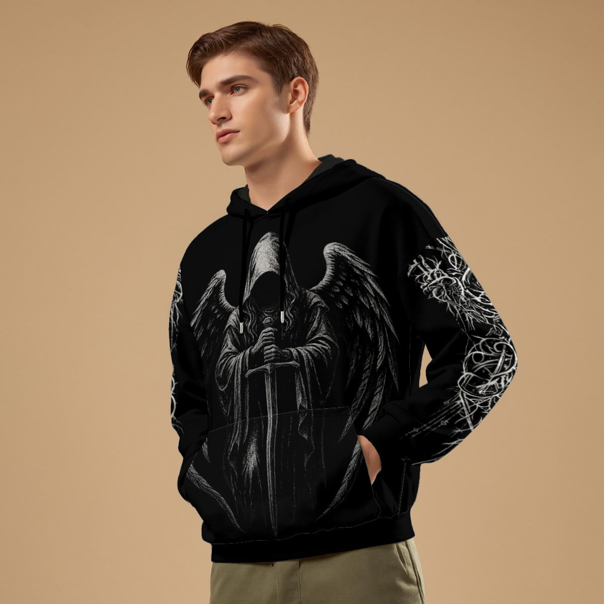 - Pitkähihainen, lenkkikuvio sisäpuolella, kiristysnauhalla, kengurutasku